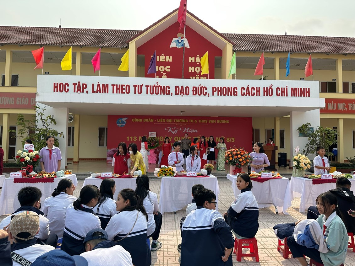 Sáng ngày 8/3/2023, trường Tiểu học và Trung học cơ sở Vạn Hương tổ chức các hoạt động kỷ niệm 113 năm Ngày Quốc tế Phụ nữ 8/3. Hoạt động trong tâm trong buổi kỷ niệm là Hội thi nấu ăn giữa các lớp từ khối 4 đến khối 9. Phần dự thi là các mâm cỗ với chủ đề" Vào bếp bằng cả trái tim". Đây cũng chính là những món quà yêu thương mà các em học sinh gửi đến các cô giáo các mẹ của mình nhân ngày Quốc tế Phụ nữ 8/3.