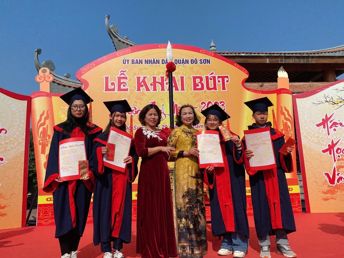 Sáng ngày 29/01/2023( Mùng 8 Tết Quý Mão), Ủy ban nhân dân quận Đồ Sơn tổ chức Lễ khai bút Xuân Quý Mão 2023 tại Tháp Tường Long- Di tích khảo cổ quốc gia. Tham dự buổi Lễ, trường Tiểu học và Trung học cơ sở Vạn Hương có các thầy cô giáo trong Ban giám hiệu, giáo viên Tổng phụ trách và 4 em học sinh tiêu biểu xuất sắc.