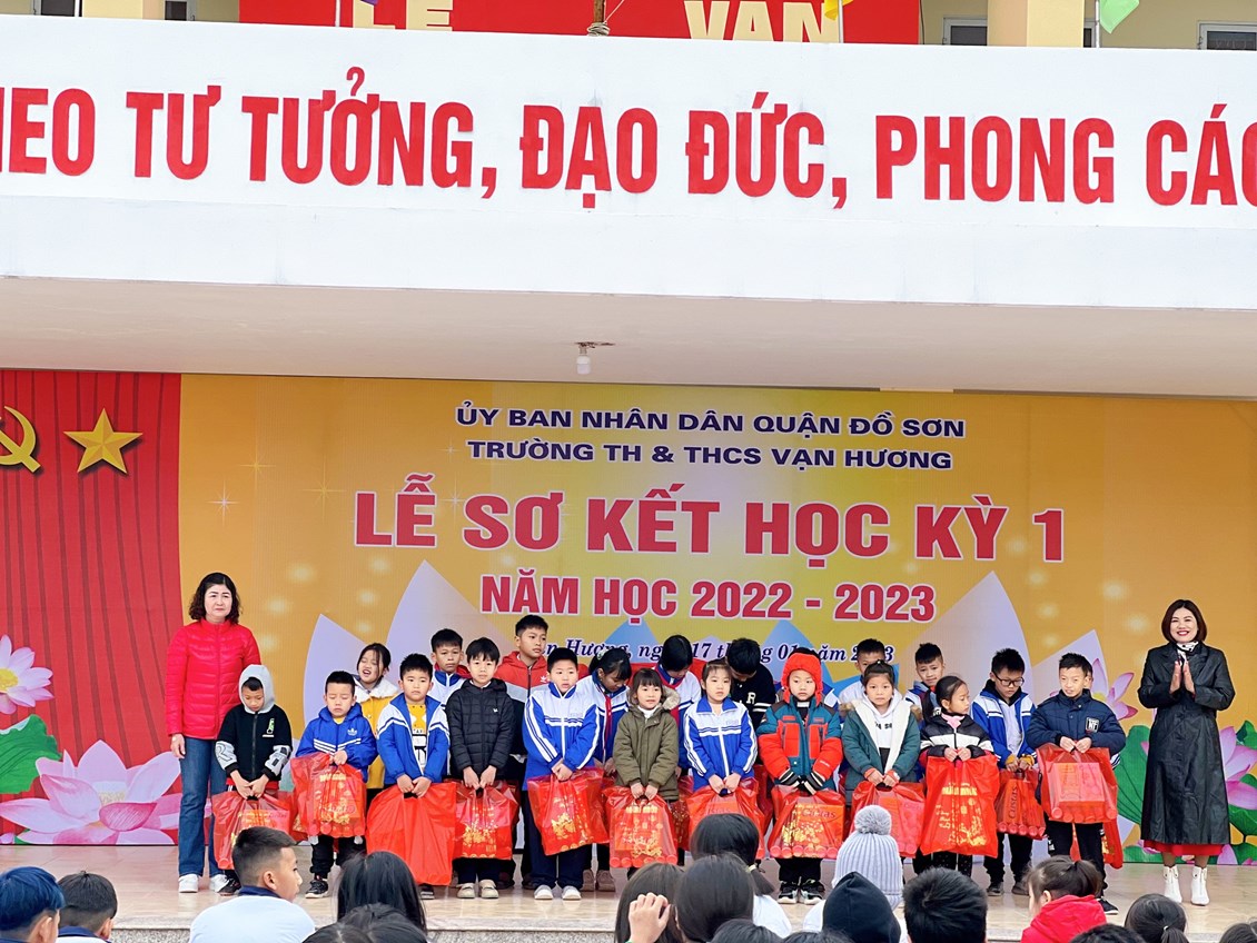 Buổi sơ kết diễn ra trước thềm Tết nguyên đán Quý Mão 2023 và trong buổi lễ này, nhà trường và Ban đại diện Cha mẹ học sinh trường, Hội Cha mẹ học sinh các lớp cùng trao hơn 50 suất quà Tết cho học sinh có hoàn cảnh khỏ khăn, nhằm giúp tất cả các em học sinh ai cũng được đón một cái Tết vui tươi đầm ấm.