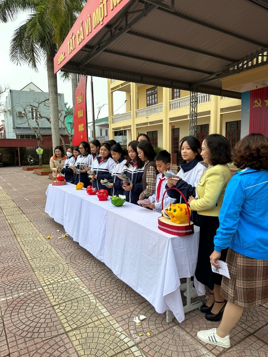 Số tiền các em học sinh quyên góp được sẽ được ủng hộ cho các em học sinh có hoàn cảnh khó khăn, chất độc da cam trong nhà trường, địa phương. Số tiền các em quyên góp không thật là nhiều song tấm lòng của các em thật đáng trân trọng!.